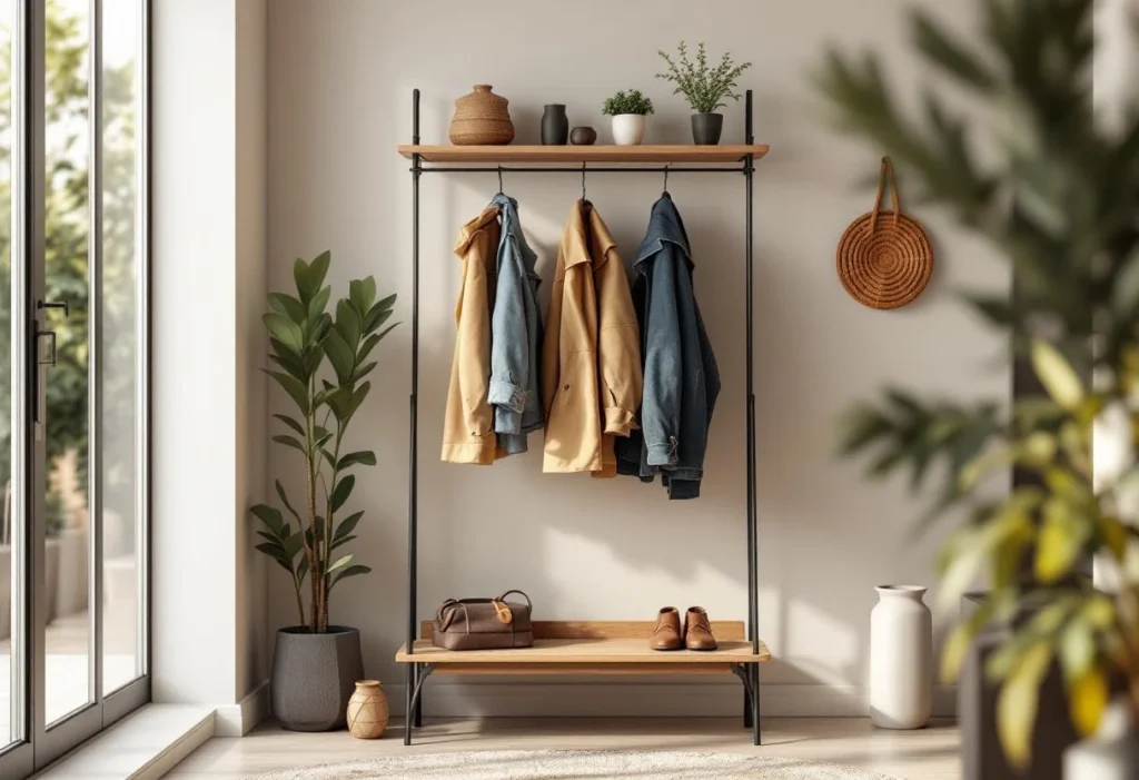 • Porte-manteau vertical : exploite la hauteur sous plafond et désencombre les zones de passage.